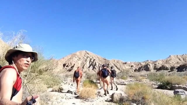 Take off your clothes and commune with nature in the California desert! Local members of the Naked Hiking in Palm Springs hiking club will lead a morning hike in Mecca Hills.